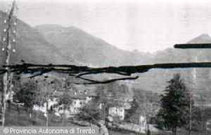 - VALLARSA (?). VEDUTA DI UN PAESE, IN PRIMO PIANO UOMO IN DIVISA MILITARE. 1916-1918