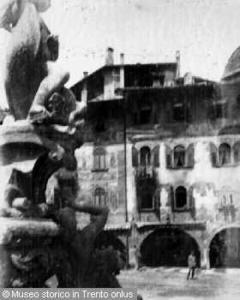 - TRENTO, PIAZZA DUOMO. VEDUTA PARZIALE DELLA FONTANA DEL NETTUNO E DI PALAZZO . 1916