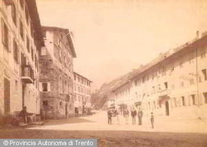 VAL DI RABBI, RABBI (TN). VEDUTA DELLO STABILIMENTO TERMALE, AL CENTRO GRUPPO DI UOMINI TRA CUI UN FOTOGRAFO