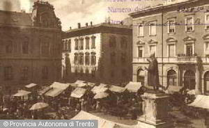 - TRENTO, PIAZZA ALESSANDRO VITTORIA. VEDUTA DELLA PIAZZA MENTRE SI SVOLGE IL MERCATO