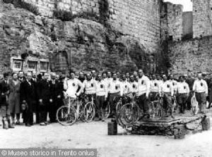 - TRENTO, CASTELLO DEL BUONCONSIGLIO. GRUPPO DEL DOPOLAVORO DEL GOVERNATORATO DI ROMA IN BICICLETTA, IN VISITA ALLA FOSSA DELLA CERVARA