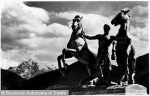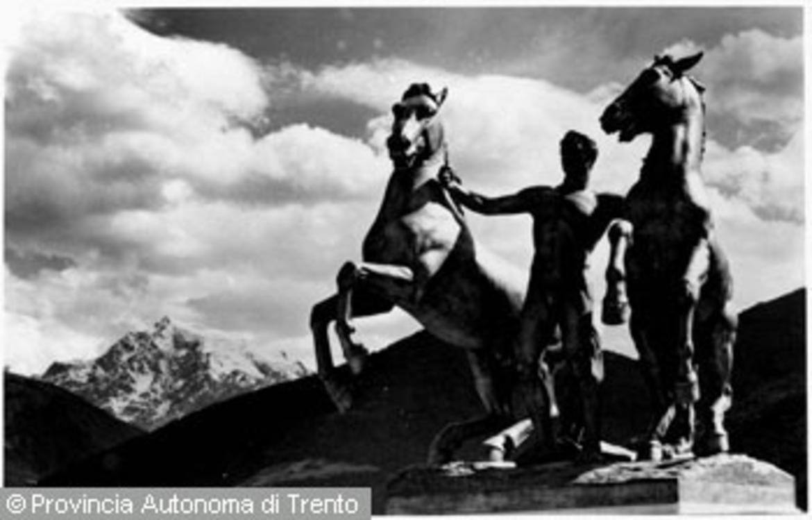 - Val Venosta / Glorenza / Scultura equestre davanti alla centrale idroelettrica, opera di E. Rubino