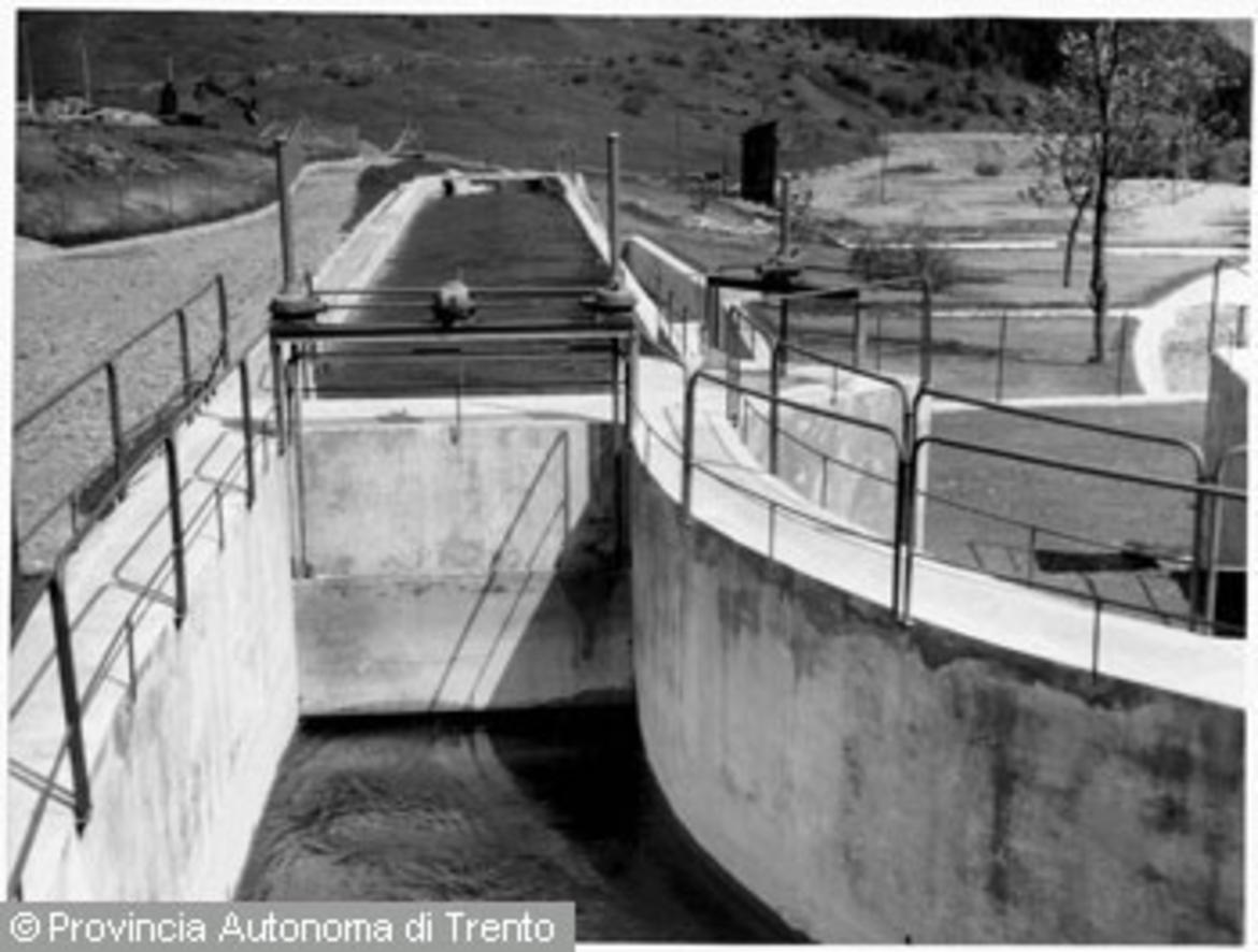 - Val d'Arnò / Costruzione dell'impianto idroelettrico di S. Massenza / Cantiere per la costruzione della presa d'acqua sul torrente Arnò, canale dissabbiatore