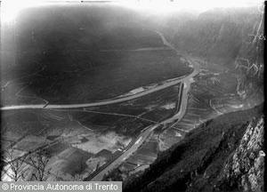 Veduta dall'alto della confluenza del torrente Noce nell'Adige