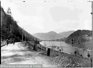 Veduta del lago di Lases con la strada che lo costeggia