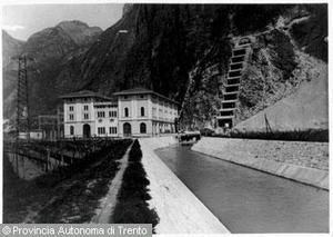 Veduta esterna della centrale idroelettrica di Mezzocorona, Trento