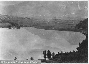 Veduta panoramica dal colle di Tenna della porzione meridionale del lago di Levico