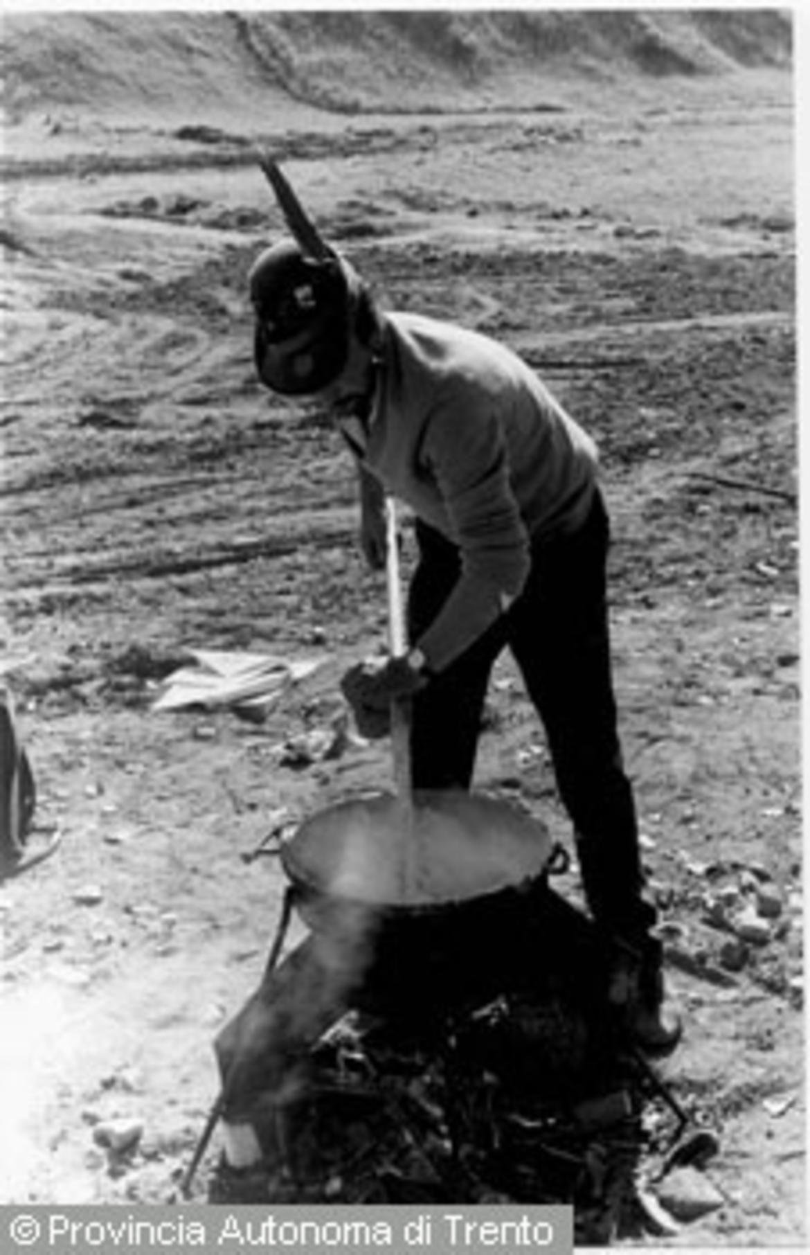 Ziano di Fiemme / Alpino mescola la polenta durante un raduno degli alpini