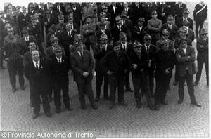 Ziano di Fiemme / I partecipanti ascoltano i discorsi delle autorità durante un raduno degli alpini