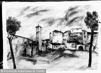 Acquerello raffigurante "Castelvecchio a Trento" di A. Dürer