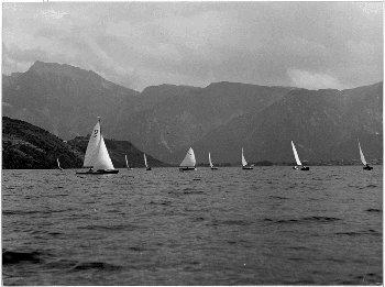 F.lli Pedrotti (1929 - 1979)Lago di Caldonazzo / Regata velica sullo sfondo della riva meridionale