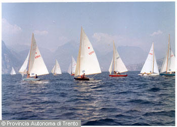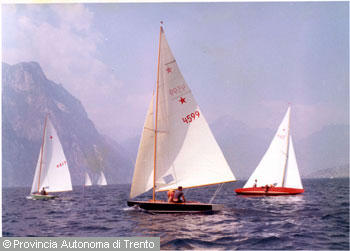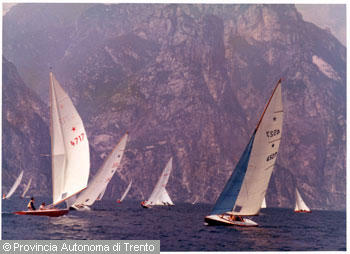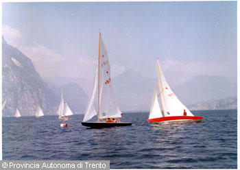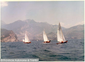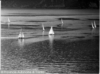 F.lli Pedrotti (1929 - 1979)Lago di Garda / Barche classe FD in navigazione durante una regata nel bacino settentrionale del...