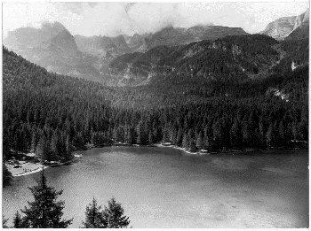 F.lli Pedrotti (1929 - 1979)Lago di Tovel / Veduta del lago sullo sfondo delle Dolomiti di Brenta