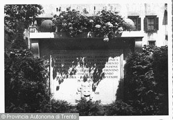 Lapide commemorativa, giardino del Magno Palazzo, Castello del Buonconsiglio, Trento