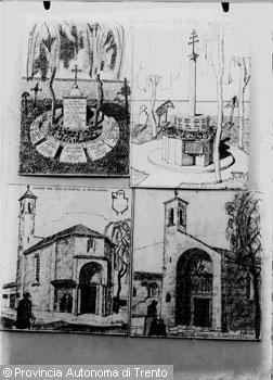 Perdomi Sergio (1887 - 1935)Progetti vari E. Sottsass, chiesa di Cappella di Lavarone, monumento a ricordo di caduti sul...
