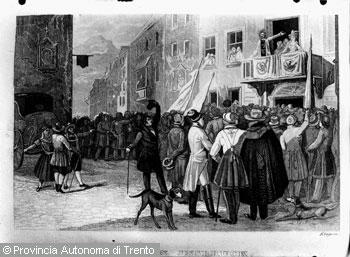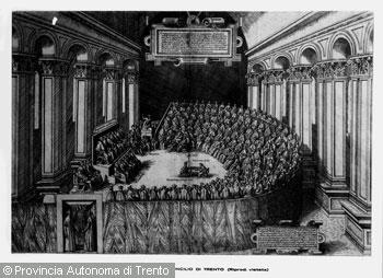 Stampa raffigurante "Udienza del Concilio di Trento nella chiesa di S. Maria Maggiore"