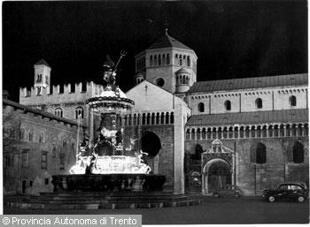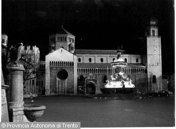 F.lli Pedrotti (1929 - 1979)Trento / Piazza Duomo / Fontana del Nettuno sullo sfondo del Duomo, veduta notturna