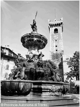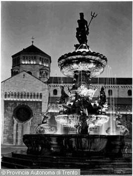 F.lli Pedrotti (1929 - 1979)Trento / Piazza Duomo / Fontana del Nettuno sullo sfondo del Duomo, particolare