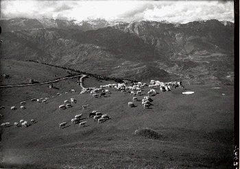 Trento, M. Bondone: panoramica su Paganella e Brenta con gregge al pascolo