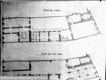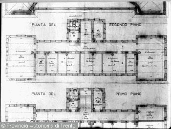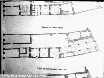 Perdomi Sergio (1887 - 1935)Trento, disegno tecnico raffigurante "piante del palazzo del Municipio vecchio"
