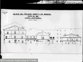 Perdomi Sergio (1887 - 1935)Trento, disegno tecnico raffigurante "Rilievo del palazzo Podetti ed annessi" (1912)