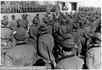 Perdomi Sergio (1887 - 1935)Trento, Doss Trento / Alpini durante una cerimonia commemorativa al Mausoleo di Cesare Battisti