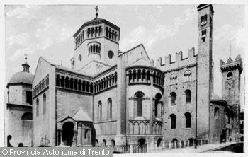 Trento, il Duomo, l'abside, il castelletto e la torre civica