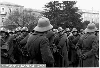 F.lli Pedrotti (1929 - 1979)Trento, piazza Dante / Gruppo di soldati durante una parata militare