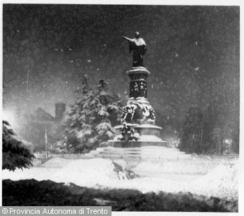 Perdomi Sergio (1887 - 1935)Trento, piazza Dante, il monumento a Dante, veduta invernale notturna