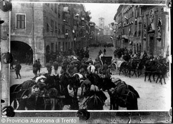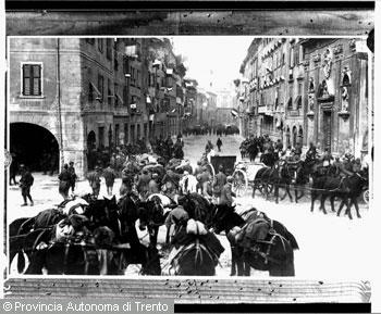 LADSTETTER MASSIMILIANOTrento, Piazza duomo - Via Belenzani, arrivo dei militari italiani nel 1918 (riproduzione)