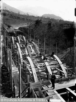 Trento, loc. Gocciadoro, costruzione del ponte della S.S. della Fricca