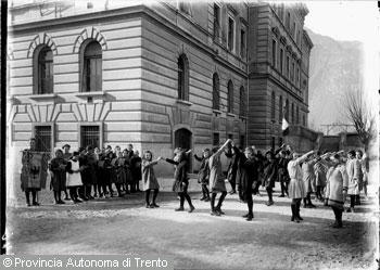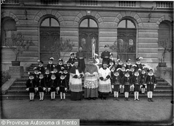 Trento, Seminario maggiore, gruppo con l'arcivescovo Celestino Endrici e bambini in costume