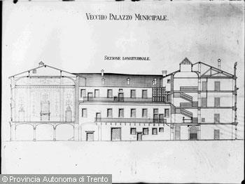 Trento, sezione del palazzo del Municipio vecchio e la sala della Tromba