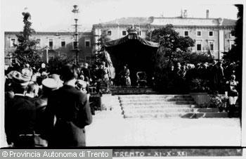 LADSTETTER MASSIMILIANOTRENTO, PIAZZA DANTE. CERIMONIA IN OCCASIONE DEL RIPRISTINO DEL MONUMENTO A DANTE. PARLA IL...