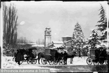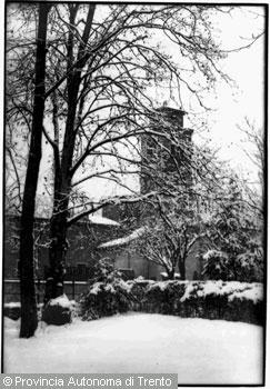 Perdomi Sergio (1887 - 1935)Trento, piazza Dante, veduta invernale con la chiesa di S. Lorenzo