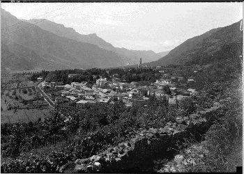 F.lli Pedrotti (1929 - 1979)Val di Non / Panoramica verso nord-ovest sull'abitato di Cles / Ripresa aerea