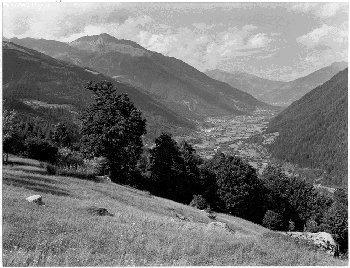 F.lli Pedrotti (1929 - 1979)Val Rendena / Veduta della valle verso nord da Iavrè a Pinzolo, sullo sfondo del Gruppo del Brenta e