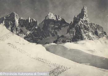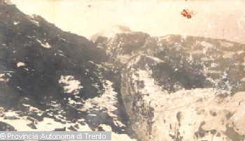 F.lli Pedrotti (1929 - 1979)Veduta del costone di una valle alpina e del torrente che scorre in fondovalle
