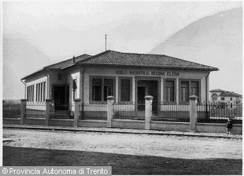 Veduta esterna di un nuovo asilo intitolato a "Regina Elena"