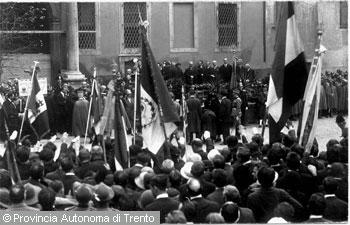 Perdomi Sergio (1887 - 1935)Autorità civili e militari nella Fossa dei Martiri davanti al cippo di Cesare Battisti,...