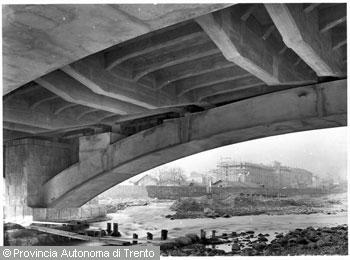 Cantiere per la costruzione del Ponte Druso, particolare di una campata, Bolzano