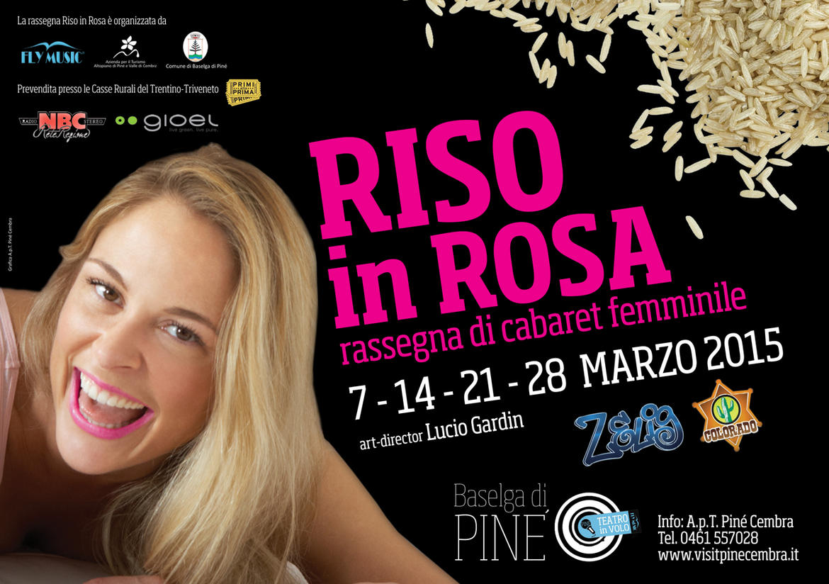 «Riso in Rosa» fa parte di un più ampio e ambizioso progetto – “Teatro in Volo”, un “contenitore di arti varie” ideato e organizzato da Fly Music, insieme all’Azienda per il Turismo Altopiano di Piné e Valle di Cembra, il Comune di Baselga di Piné, il Coordinamento Teatrale Trentino, Radio NBC e Gioel.