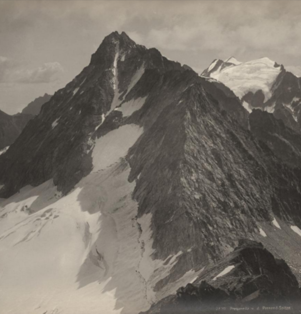 Die erste Etappe des Reisewegs dokumentiert die Welt der Gletscher und der schroffen Gipfel zwischen 3900 und 1500 Metern Meereshöhe. Die Bilder erzählen eindrucksvoll, wie der Reisende der vorletzten Jahrhundertwende diese Welt der hohen Berge erlebte. Neben den Bildern des aus Biella stammenden Vittorio Sella haben viele große Landschaftsfotografen danach gestrebt, das Majestätische dieser Landschaft einzufangen. Unter ihnen finden sich Namen wie Alois Beer, der zwischen 1900 und 1910 die Region bereiste, der Maler und Kupferstecher Friedrich Würthle, der bereits in der zweiten Hälfte des 19. Jahrhunderts ein Fotostudio in Innsbruck eröffnete, aber auch der Meraner Leo Bahrendt und der Innsbrucker Franz Gratl. Ihre Bilder lassen einen Kosmos beeindruckender Bergwelten vor dem Betrachter auferstehen, die Eiswelten der Gletscher des Ahrntals, der Belluneser Dolomiten und der Brenta, aber auch zeitgeschichtliche interessante Momente, wie die Eröffnung der Stilfser Joch Straße im Herbst 1925.