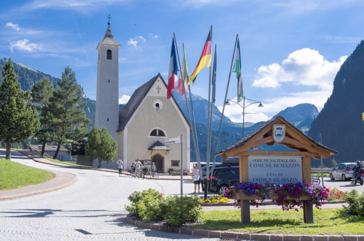 Die 1638 gegründete Kirche Madonna del Carmine, in der Mitte von Fontanazzo di Sotto, besitz einen sehenswerten, sich nach oben hin verjüngenden Glockenturm - seine Turmspitze ist mit Holzschindeln gedeckt, unterhalb von ihnen die Jahreszahlen der Restaurierungsarbeiten 1753, 1882 und 1983 -, der den sakralen Bau flankiert. Treffpunkt bei der Kirche. Freier Aktivität.