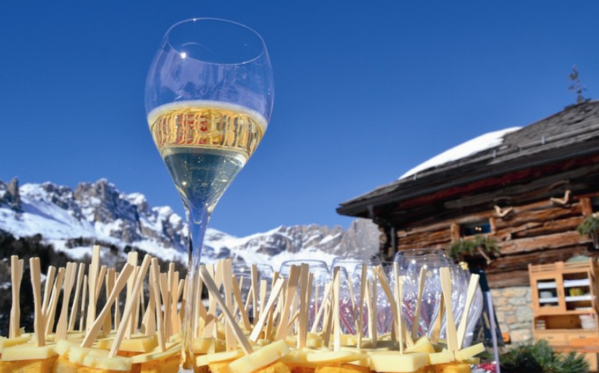Verkostung von verschiedenen Käsesorten aus dem Fassatal und Rotari Trentodoc