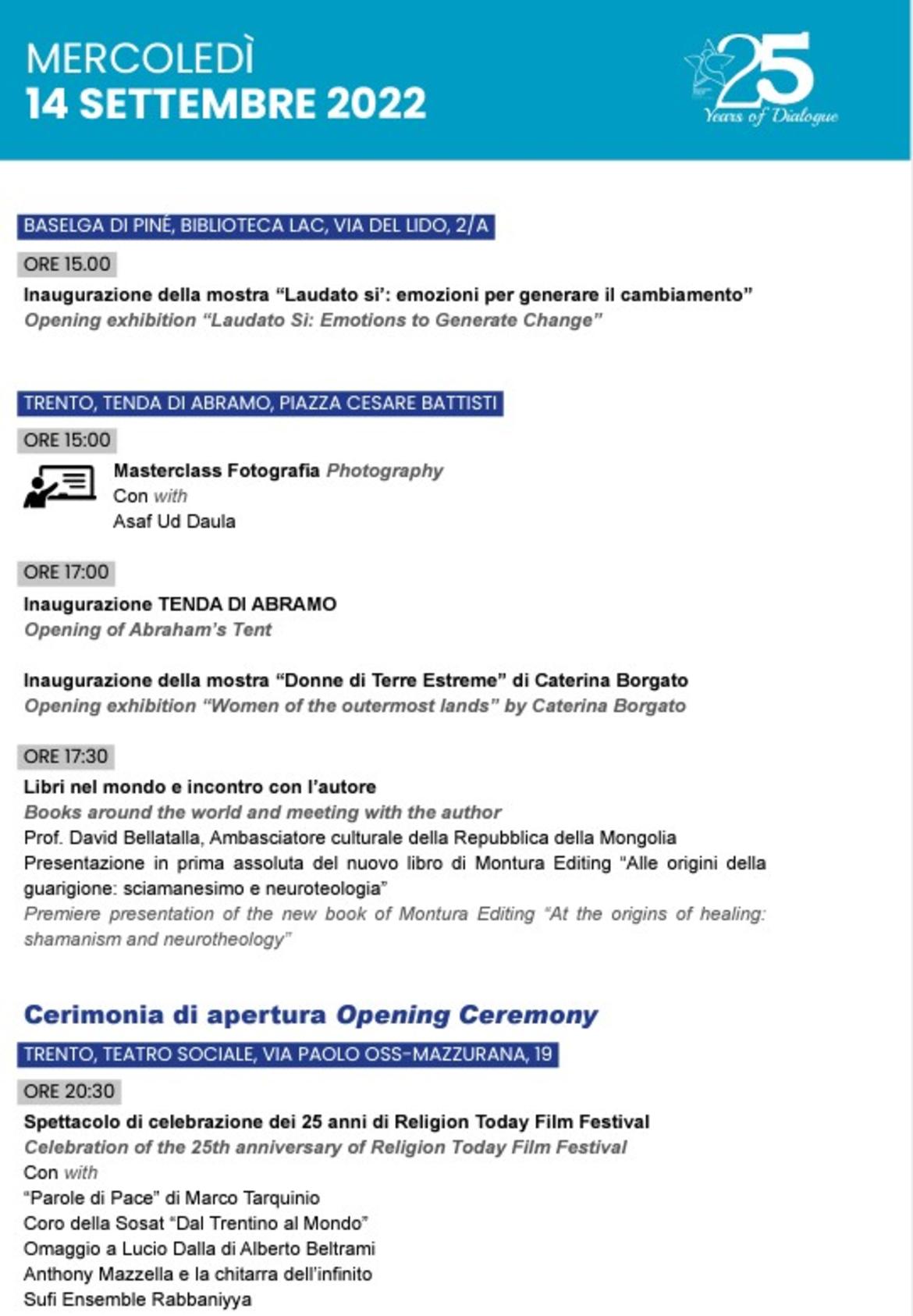 Religion Today Festival 2022 - Veranstaltungen am Mittwoch, 14. September