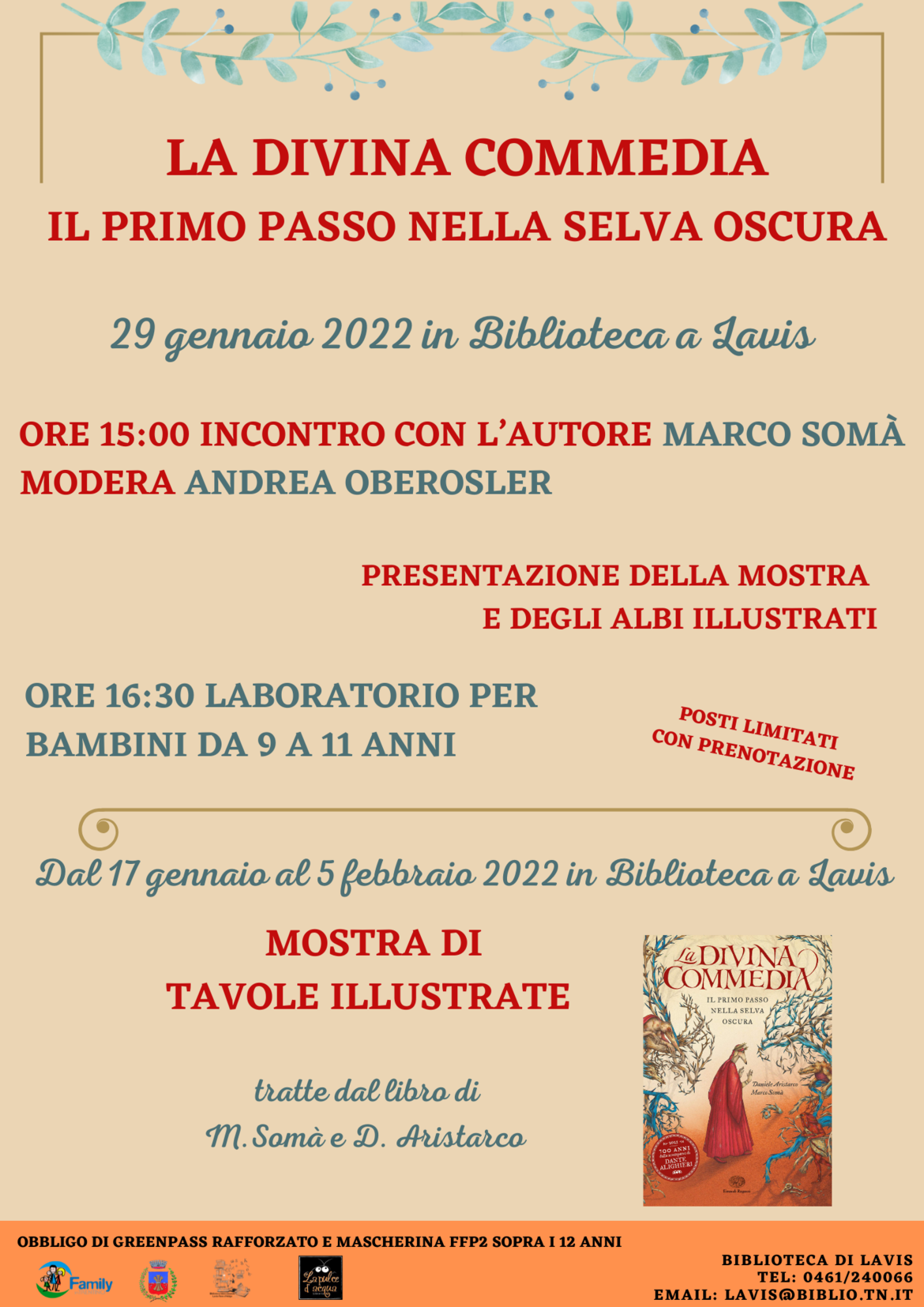 Die illustrierten Tafeln stammen aus dem Buch Die Göttliche Komödie. Der erste Schritt im dunklen Wald (von D.Aristarco, Hrsg. Einaudi Ragazzi, 2021).
