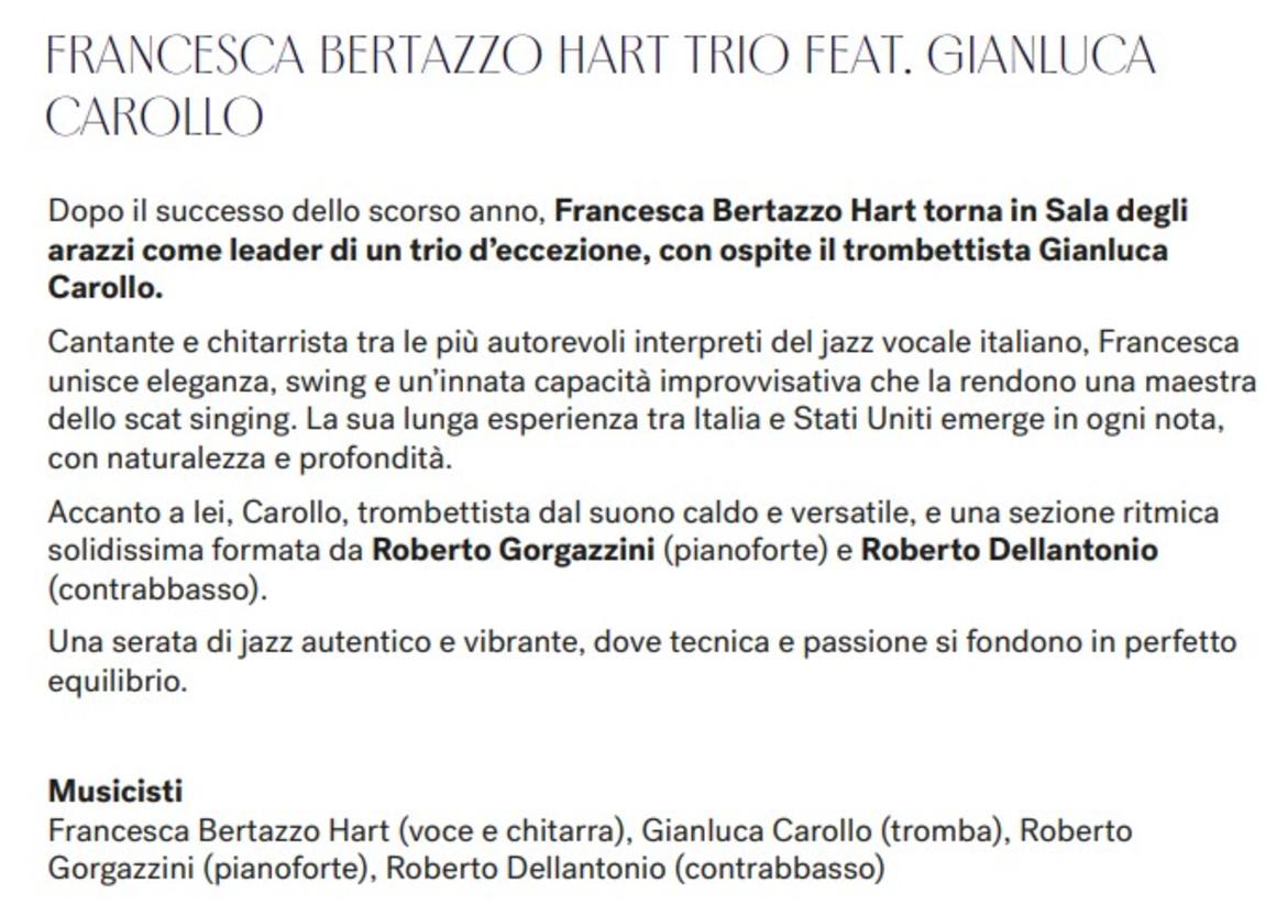 Francesca Bertazzo Hart Trio Feat. Gianluca Carollo