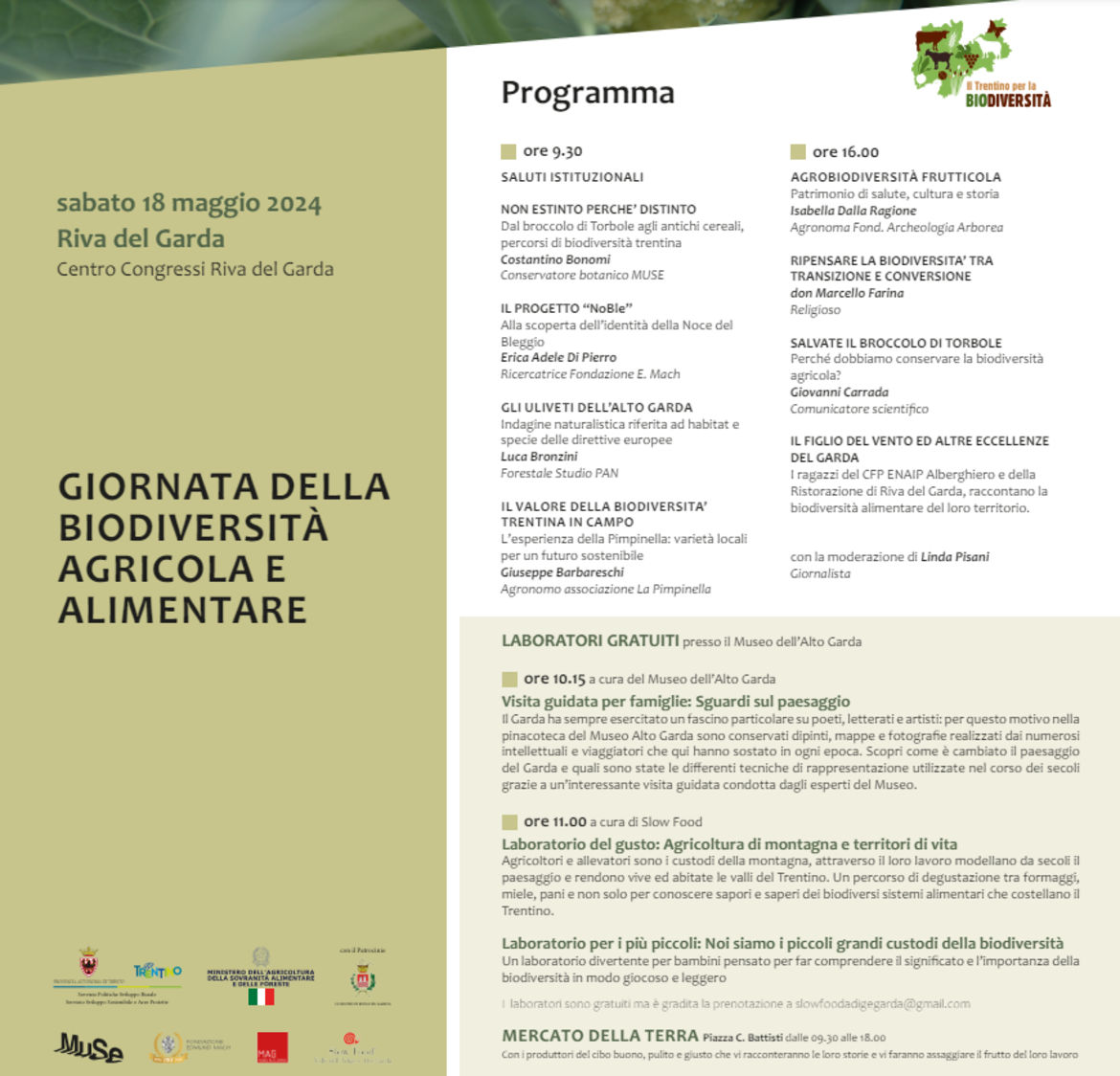 A Riva del Garda sabato 18 maggio una serie di appuntamenti celebreranno la Giornata della Biodiversità agricola e alimentare che ricorre lunedì 20 maggio insieme alla Giornata mondiale delle api.