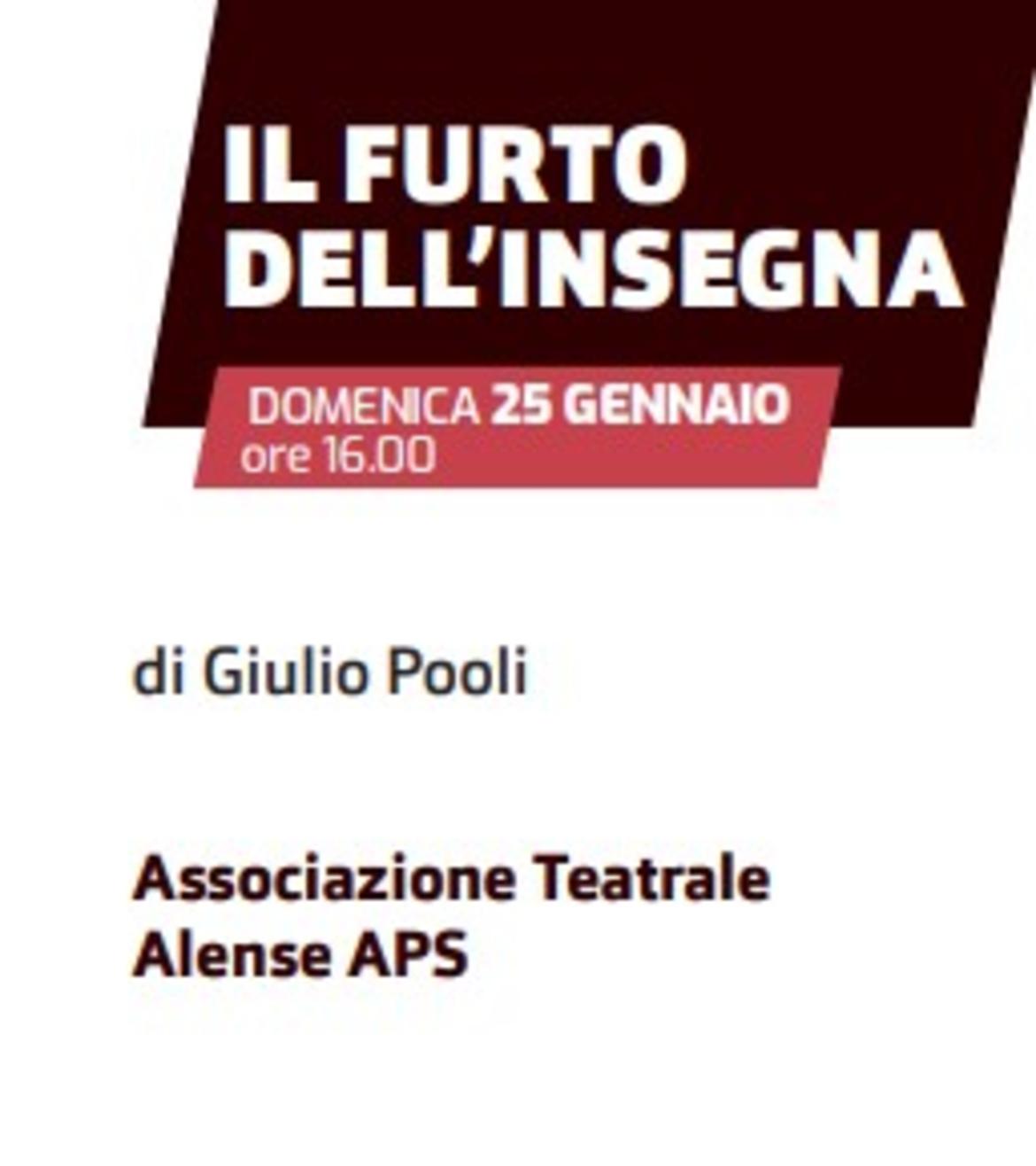 Prosegue domenica 25 gennaio al Teatro “San Marco” di Trento l'edizione 2026 de “La Vetrina del Teatro Co.F.As.”, rassegna promossa dalla Federazione Trentina delle Filodrammatiche. Il secondo spettacolo in cartellone vedrà in scena l’Associazione Teatrale Alense con «IL FURTO DELL’INSEGNA», una commedia dell’autore locale Giulio Pooli, che figura anche fra gli interpreti.